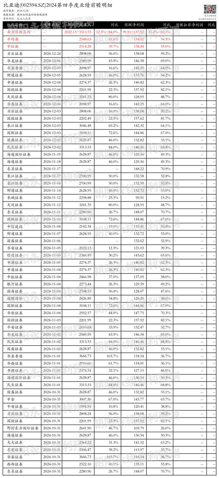 季度业绩前瞻 | 比亚迪:业绩超预期,增长强劲,预测第四季度营收2022.13~3313.53亿,同比增长12.3%~84.0%