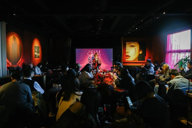 在同名专辑《陈婧霏》发布后的第四年,陈婧霏推出了第二张全词曲创作专辑《猩红》,试听会现场也以“猩红剧场”为主题,在浓郁热烈的红色布景中,她和乐迷们分享了专辑背后的创作故事和这些年的心路历程。