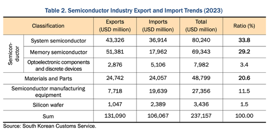 韩国本土半导体巨头三星电子和SK海力士主要集中在存储芯片上,而存储芯片仅整个半导体市场的30%左右。相比于台湾地区拥有包括芯片制造、封装和测试在内的完整供应链,韩国的存在感微弱。