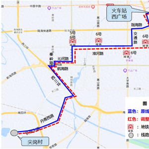 途经道路调整为:丹青西路、西三环、航海路、秦岭路、沁河路、桐柏路、淮河路、京广路。