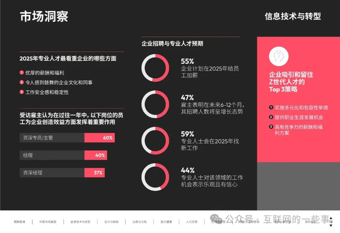 《中国薪酬报告2025》近日发布,为职场人士提供了最新的薪资趋势与就业展望。报告显示,56%的企业计划在2025年给员工加薪,反映出企业对人才的重视。然而,招聘市场总体谨慎,候选人端竞争激烈。Z世代成为职场新势力,他们更看重企业文化、工作安全感及职业发展机会。不同行业薪资差异显著,信息技术、医疗健康等领域薪资水平持续领跑。此外,报告还指出,AI等新技术将深刻影响职场,企业需借助新技术提升招聘与留任效能。对于求职者而言,提升软技能、增强跨文化沟通能力将成为关键。2025年,职场将迎来新变化,薪资水平整体趋稳,部分领域涨幅可期。