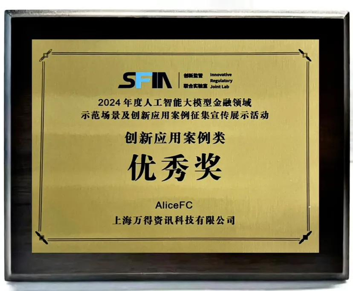 AI大模型金融领域创新大奖,AI⁺万得投顾终端AliceFC脱颖而出