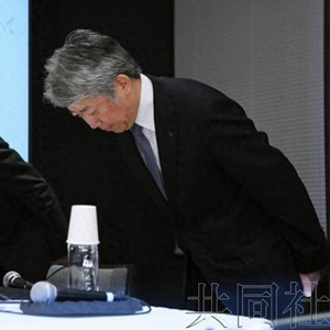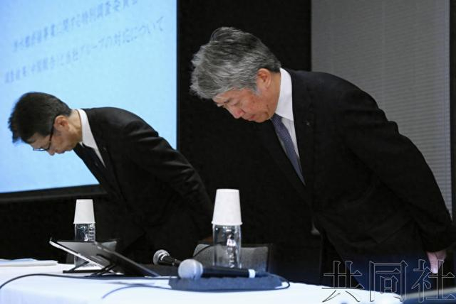 27日,川崎重工社长桥本康彦(右)等召开记者会并道歉。 共同社