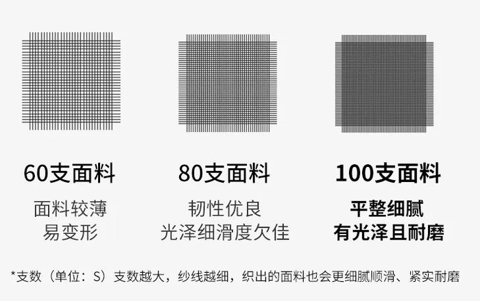 “支(S)”是纱线粗细单位,支数越大,纱线越细,触感越柔。