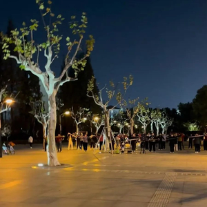 12月15日,天气晴好。晚间20时许,记者在现场看到,这片舞池从西到东一共汇聚了5支“舞蹈队”。最西侧跳的是富有节奏感的健身操,大约由20余人组成;紧挨这支舞蹈队的,是一支由4个人组成的小型舞团,穿着整齐划一的队服,尽管人数少,但音乐的音量却要超过旁边的健身操团。穿过乳山路,面前的三角形广场内容纳了一支交谊舞团,其人数要远超前面两支舞蹈队,“快三步”的拍子热情洋溢。再往前走,穿过南泉北路,是此处人数最多的一支舞蹈队,选择的是颇为悠扬的乐曲,形成了一个50人左右的方阵。