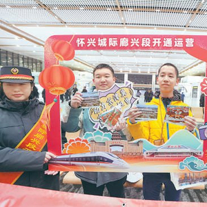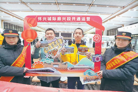 今早,也有不少铁路迷赶来尝鲜。学生付家篪和朋友特意从北京南三环赶到廊坊,坐首班车“尝鲜”,亲身感受京津冀的发展变化。现场,他们与乘务员、站务员合照留念,“最开心的是领到了怀兴城际首班车的专属明信片。”