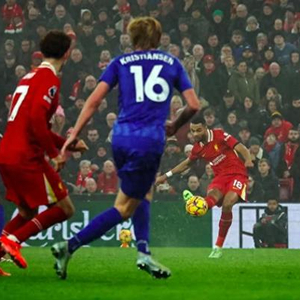 然而,莱斯特城并未被利物浦的开场强攻吓倒,他们在第 6 分钟抓住了一次反击机会,瞬间改变了场上局势。马维迪迪在边路如脱缰野马般狂飙突进,凭借出色的个人能力,晃过了利物浦的防守球员,精准地送出一记低平传中。乔丹・阿尤如饿虎扑食般冲向落点,在与罗伯逊的卡位对抗中,他凭借强壮的身体优势,硬生生地顶开对手,抢在其他人之前,迎着来球,用尽全力一脚劲射,足球如炮弹般钻进了球门死角,莱斯特城居然不可思议地率先取得领先,客队球迷区瞬间爆发出一阵疯狂的欢呼声,与利物浦主场的惊愕氛围形成了鲜明对比。