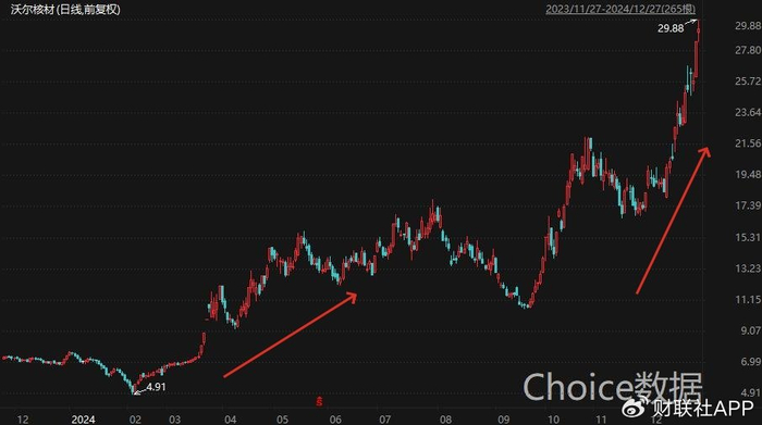 国内专业从事高分子辐射改性新材料研发制造的龙头企业沃尔核材同期机构来访接待量68家。二级市场方面,自2月低点迄今沃尔核材股价累计最大涨幅509%。沃尔核材在12月27日披露的投资者关系活动记录表中称,公司高速通信线订单饱和,机器满负荷运转中。公司的高速通信线主要客户包括安费诺、豪利士、莫仕、泰科等国际客户;以及立讯、英飞联等国内多家连接器企业。公司的高速通信线供应给下游客户群体后配套给国际、国内各大服务器厂商终端使用。公司2024年实现了800G高速通信线、单通道224G高速通信线的批量交付。沃尔核材12月26日在互动平台表示,公司224G高速通信线产品正在批量交付中。目前公司高速通信线订单饱和,设备满负荷运转,后续设备正在陆续到货,其产能逐步提升。