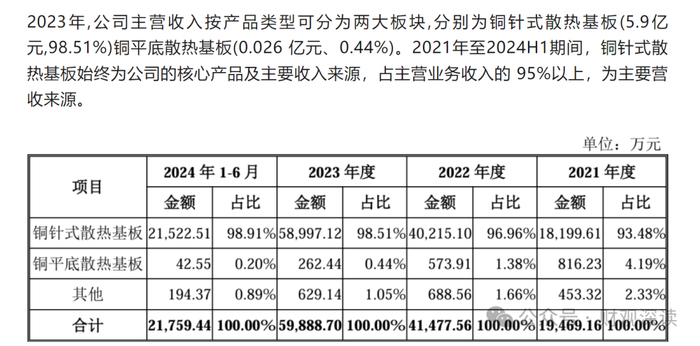 黄山谷捷成立于2012年,公司的规模比较小,截至到今年6月末,公司全部员工人数也不到600人。此外,公司的产品也很单一,主要产品是以铜为基础原材料的散热零部件,其铜针式散热基板产品去年贡献了公司98%以上的收入,而这种产品的单价其实比较便宜,在95元左右。