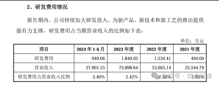 2023年,黄山谷捷研发人员共48名,当年研发项目达到43个,平均每个研发项目分派人手1.1个。黄山谷捷的研发费用率大幅低于行业均值,更是垫底于同行业可比公司。报告期内,黄山谷捷的研发费用率分别为1.93%、2.30%和2.42%,这甚至低于黄山谷捷所获得高新技术企业认定中规定的,最近一年销售收入在2亿元以上的企业,研发占比不低于3%这样的硬性标准。实际上,黄山谷捷可比公司研发费用率均值分别为5.29%、6.83%和5.13%,均超过黄山谷捷的水平。