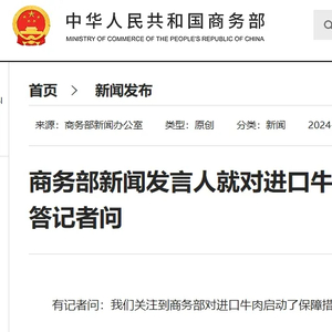 12月27日,据商务部消息,商务部对进口牛肉启动了保障措施调查。