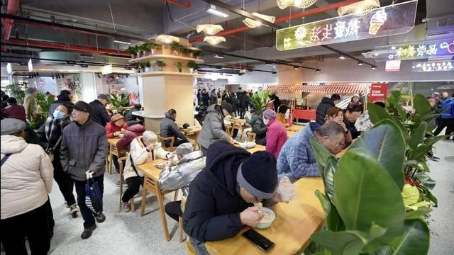 热油在锅内滋滋作响,新鲜出炉的蒸饺、煎包冒着热气,酥脆的油条,咸淡适宜的豆腐脑撒上一小把咸菜末、淋上一勺辣椒油……不少市民从店家手中接过早餐,坐在共享休息区,等不及晾凉,便迫不及待地尝一口。
