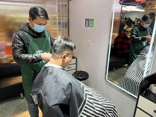 “原计划是过来买菜、吃饭的,看到这边可以剪发,并且还有开业优惠,那就来试试。我是没有想到,现在‘菜场’里都可以剪头发了,这就像是社区的‘邻里中心’一样。”