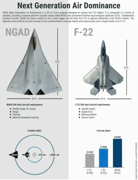 但还有一个更直接的证据,那就是美国的推进下一代空中优势(NGAD)计划,长期以来旨在通过研发第六代战斗机及配套作战系统,来确保美国的空中优势可以领先全球一代。
