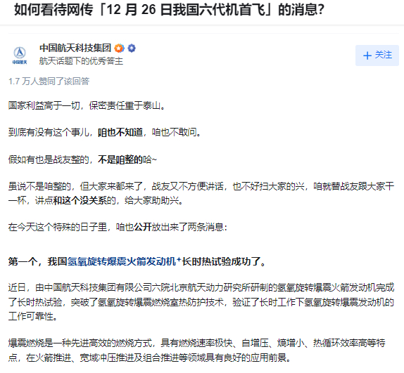 六代机这么重要的东西,肯定以官方口径为准,官方没说那就不能说这次上天的一定是六代机。