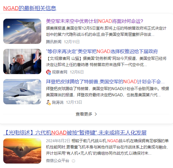 这个计划因为过于烧钱,自2011年立项开始,推进了13年都还停留在PPT阶段,已经停滞很长时间了,拜登一直不拨款,特朗普选举成功后直接踢皮球踢给了特朗普,说等特朗普正式上任后,让特朗普来决定是不是给NGAD计划投钱来继续研发美国的第六代战机。