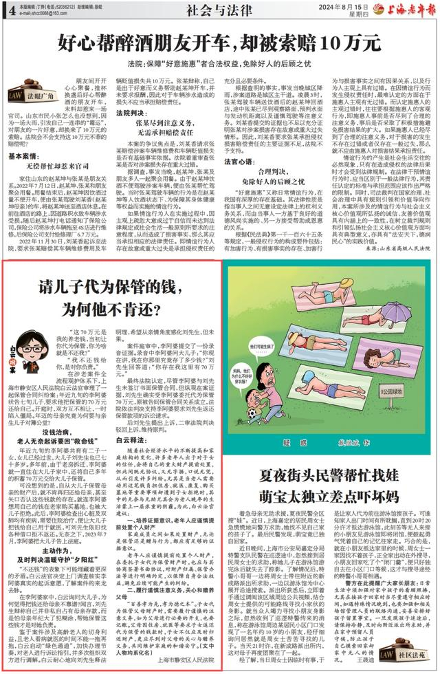 为更好服务广大读者,本报法律版今起开设“白云说案”栏目,通过一个个精心挑选的案例,由白云法官为大家普法释法,让法治护航老伙伴们的幸福晚年。