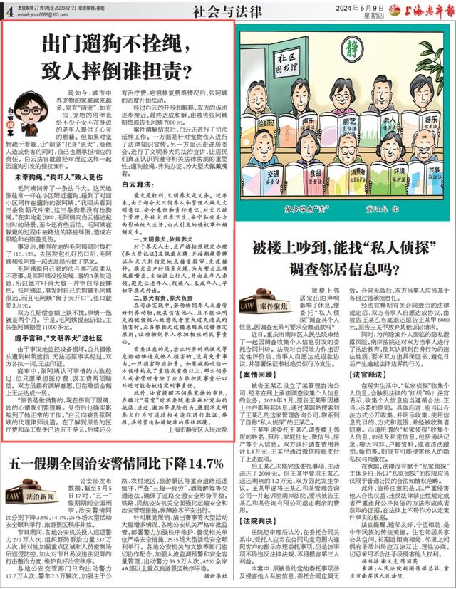 出门遛狗不拴绳,致人摔倒谁担责?