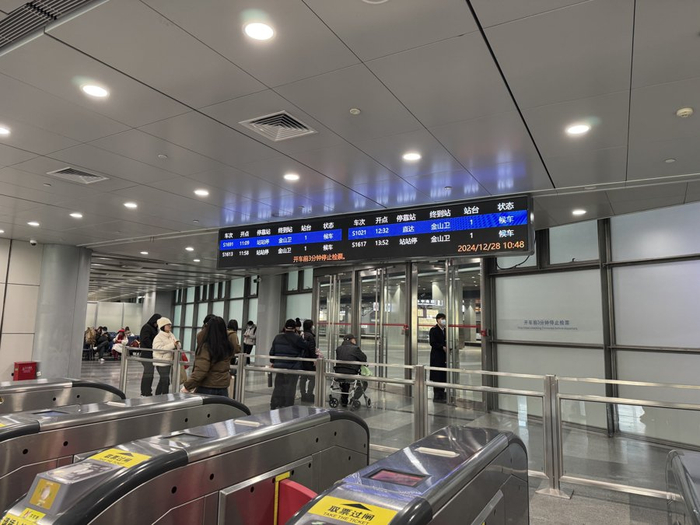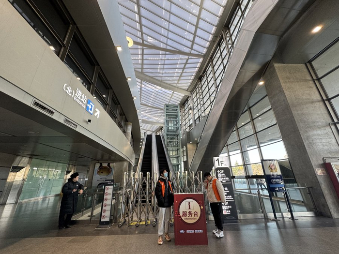 12月24日起,上海南站金山铁路的旅客候乘区由上海南站的南广场整体迁至北广场,旅客进站口也相应调整为上海南站北广场一层西侧的金山铁路进站口。记者从南站北广场前往金山铁路新的候车区时发现,个别旅客会误入地下一层的金山铁路到达口,好在徐汇区和铁路上海南站方面安排了身穿橙色背心的志愿者,旅客在寻找进出站口时,都可询问身穿“橙马甲”的志愿者和“绿马甲”的工作人员。