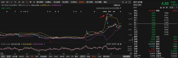 根据海宁皮城三季报显示,宏达高科是该股的第三大股东,此次减持后,宏达高科仍位列公司第三大股东。二级市场上,受控股股东变更的影响,海宁皮城股价在11月15日至11月21日期间出现了连续5个涨停,并在11月25日达到阶段高点7.02元/股,本次宏达高科减持海宁皮城的成交均价为6.4268元/股,有分析认为可谓高位“精准”减持。