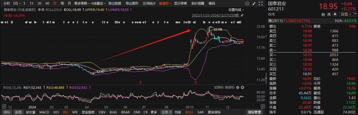 小市值冰雪经济概念股冰山冷热通过出售国泰君安股票获得投资收益3324万元。冰山冷热12月24日公告,2024年10月14日至12月24日,公司出售所持国泰君安全部股份,出售数量为1091.0008万股,出售均价约为20.46元/股。经初步测算,公允价值变动收益约2700万元,投资收益约3324万元,对公司2024年度净利润贡献约5138万元。资料显示,冰山冷热2023年归母净利润为4938万元。二级市场上,国泰君安4月低点迄今股价累计最大涨幅达77%。