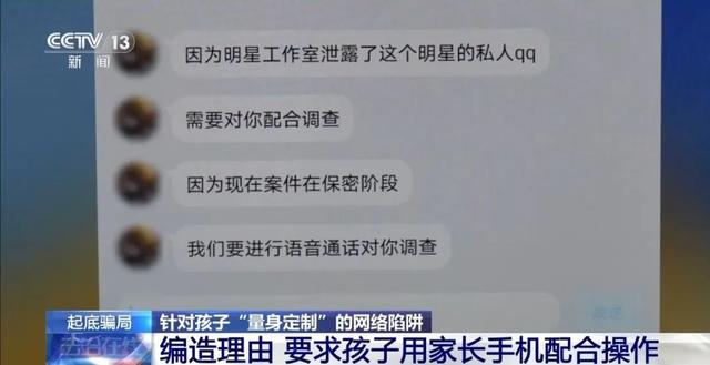 京京母亲:对方就发了几张照片过来,上面写他是上海市公安局的民警,然后说因为有明星工作室的内部人员,泄露明星私人QQ,导致大量粉丝加明星,造成明星的隐私泄露。然后现在涉及的未成年人进行调查。
