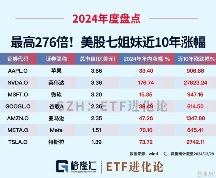 2.美股七巨头10年22倍,英伟达10年276倍