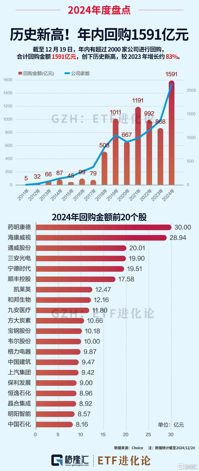 A股掀起回购潮,年内A股回购金额高达1591亿元,创下年度历史新高,较2023年的868亿元增长约83%。