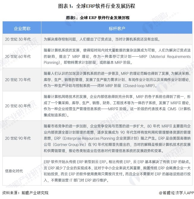 全球ERP软件行业发展历程