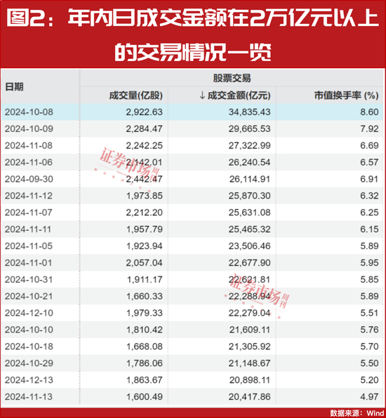 基于此,市场日成交额快速放大,9月25日以来始终保持在万亿元以上,62个交易日中18个交易日成交额突破2万亿元,10月8日更是创出了3.48万亿元的历史极值(见图2)。