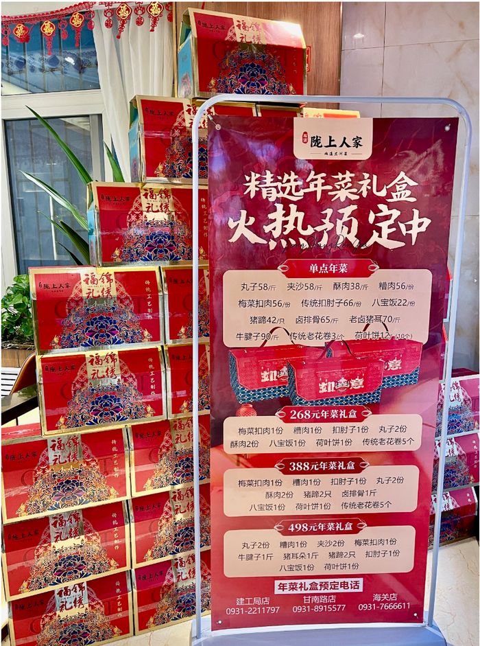 此外,为了将节日的氛围感拉满,许多餐饮酒店在原有的装饰布置和菜肴制作之外也准备了许多特色服务,如节目表演、抽奖活动等。有条件的酒店,大厅也使用电视屏幕播放除夕相关节目,以烘托年味。据和家和前台销售经理介绍,酒店除夕当天为就餐顾客准备了“摇一摇”抽奖和储值打折等活动。记者也了解到,大部分餐饮酒店都为年夜饭套餐赠送了饮料或干果盘等小食。兰州奥体如意华玺、众邦喜来登等五星酒店则准备了伴手礼,进一步提升消费者除夕夜用餐体验。