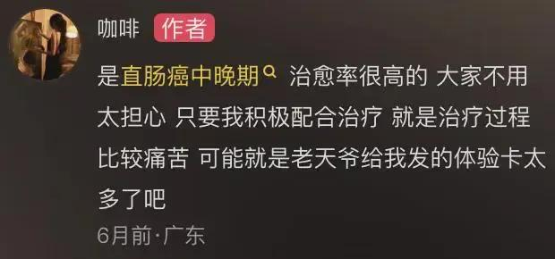 而在5月22日的视频中,“咖啡”回应称自己是直肠癌中晚期,治愈率很高,但过程可能会比较痛苦。
