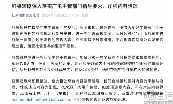 那么问题就来了,虽然红果短剧是走在正确的道路上,可并不等于短剧也走在正确的路上。“会议要求,红果短剧要积极主动履行社会责任,落实平台主体责任”这句话的潜台词,就是红果短剧存在监管不力的问题。对此红果短剧方面的声明中也谈及,“从严打击含有不良价值观导向、违反公序良俗、低俗‘擦边’等违规内容的微短剧。”