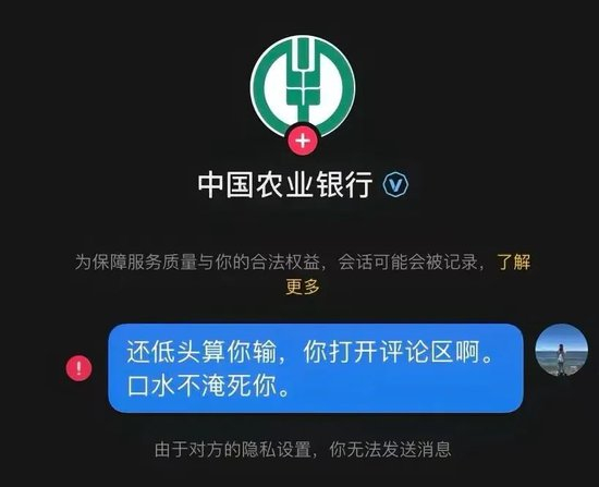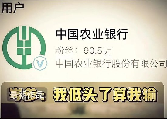 而农业银行置顶的一条视频“我低头了算我输”的视频,更是火上浇油。