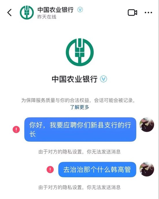 事情起源于农业银行河南新县支行一名韩姓员工。