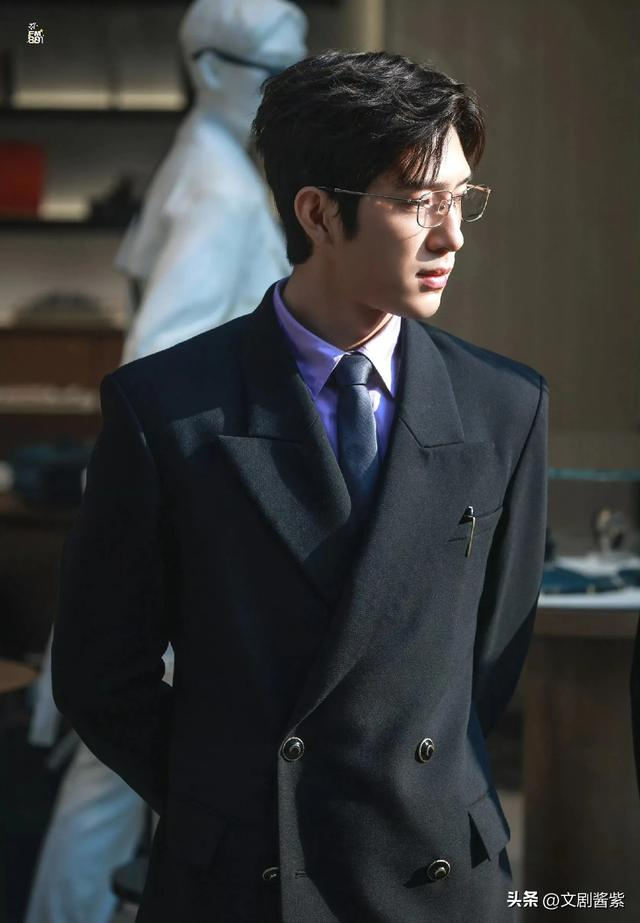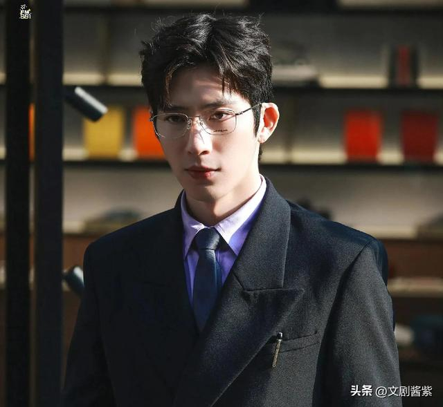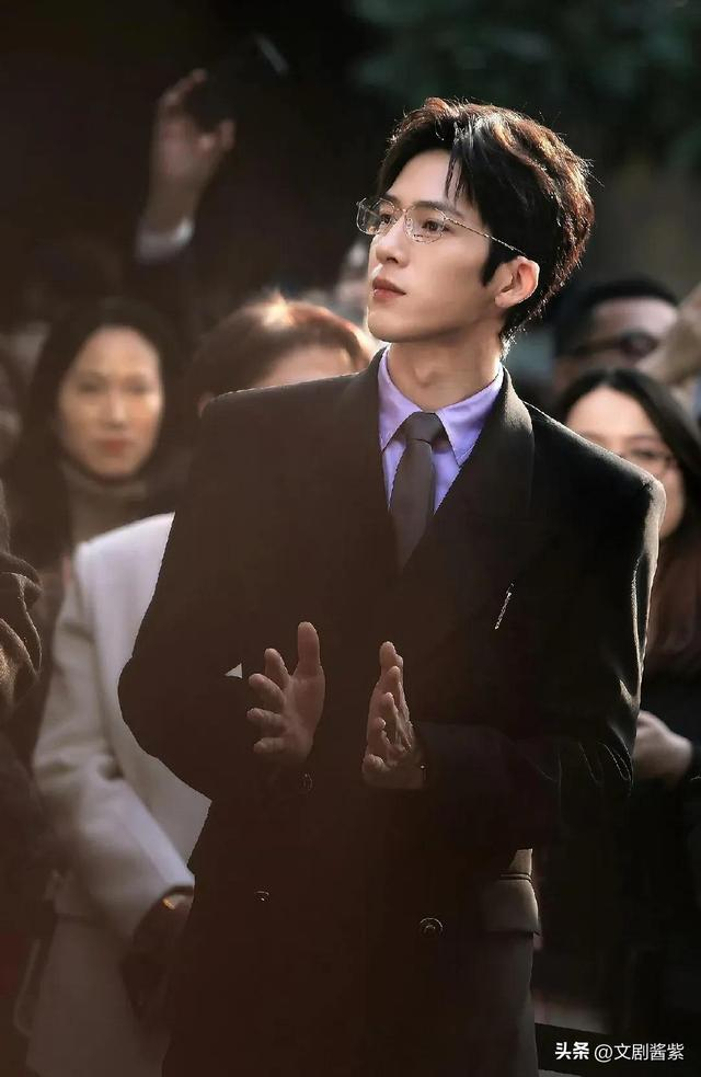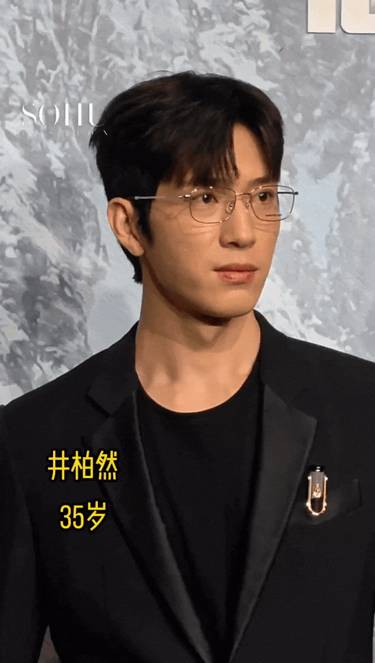 作为活动现场年龄稍长的井柏然,同样身着盛装出席,一身商务精英式的西装笔挺有型,内搭紫色衬衫系着领带,规整中透着时尚心思。板正短发利落清爽,金丝框架眼镜轻架鼻梁,喉结微微凸出,性感而内敛,整个人散发出清爽干净的气息,禁欲矜贵与优雅帅气并存,周身弥漫着一种难以言喻的性张力,仿若影视剧里胸有成竹、能言善辩的文雅律师,正气凛然又矜持有度,思维敏捷藏于沉稳表象之下,举手投足间尽显专业风范。