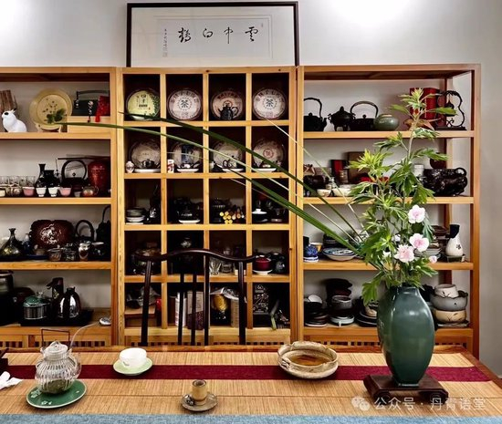 实际上,屋子里十分整洁,是那种关于江南小院、诗歌赏析、传统文化类的公号美图一般的陈设,有许多形态各异、精美好看的茶具、香插和花器,当然也少不了佛像、文房四宝和音乐。