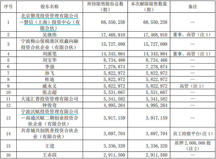 杉杉股份本次限售股解禁明细