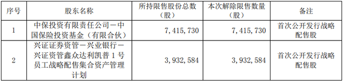 达利凯普本次限售股解禁明细