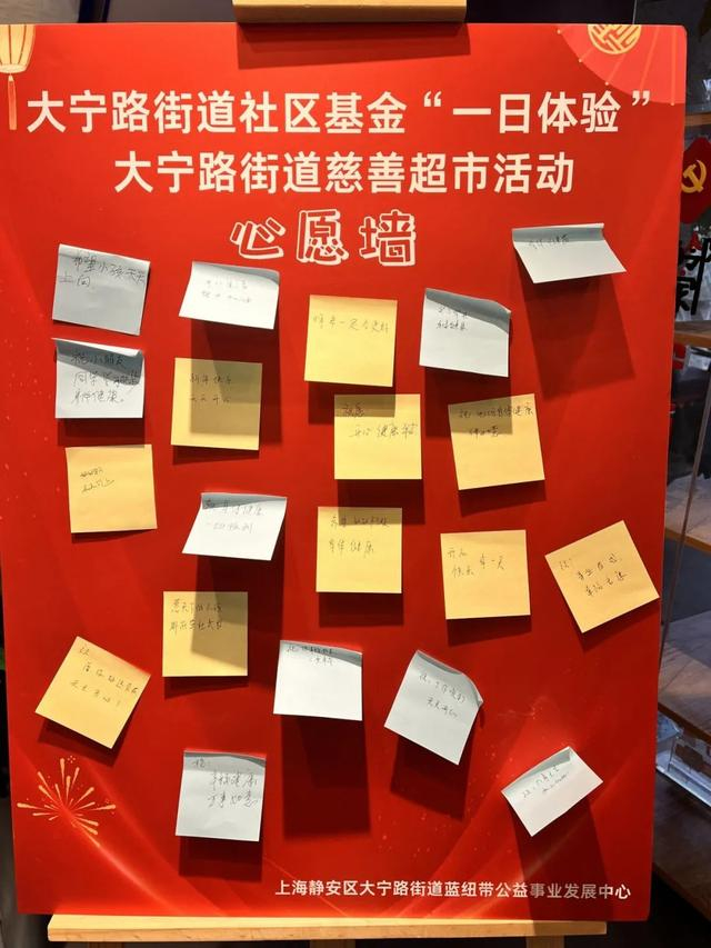 在“小小店长们”认真工作的同时,另一组学生则化身为热情洋溢的“小小倡导员”,邀请来店的居民写下对社区困难群体的新春祝福。寒风习习,但是在“小小倡导员”的努力下,社区居民纷纷停下脚步,拿起笔,在便签纸上书写下自己的心声,将一份份关爱和祝福留在这个温馨的小店。