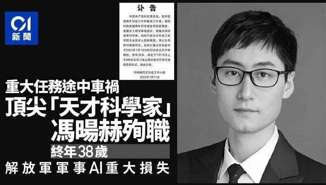 人们很自然地会联想起一年前的冯旸赫,出差到北京,在从北京机场到住地路上乘网约车,于2023年7月1日2时35分遭遇车祸当场牺牲。冯旸赫是国防科技大学战略级的科学家,主要从事强化学习、智能博弈、智能规划、兵棋推演技术、贝叶斯理论的研究,在指挥控制、智能辅助决策方面取得重要创新突破。其研发的战颅系统是中国军事指挥系统的“超级大脑”。冯旸赫牺牲时仅仅只有38岁,正是发挥才能的黄金年纪,因此他的牺牲让人极为痛心和惋惜。