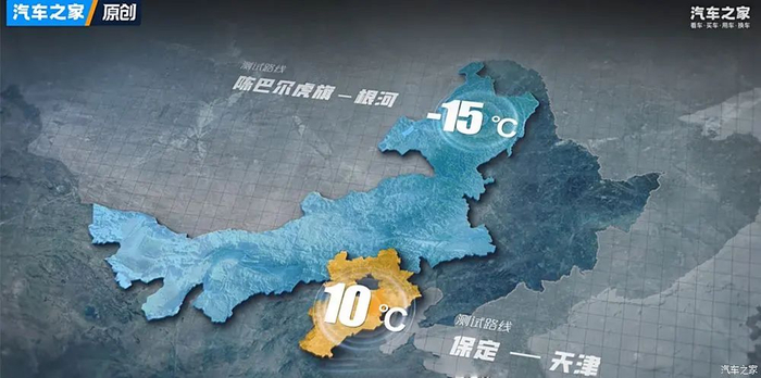 今年的新能源超测,我们的测试场地选择在了京津冀和内蒙古两地,它们分别是新能源车主冬季用车最具代表性的低温区和寒冷区。上述双温区基本覆盖了我国绝大多数地区冬天的低温环境。