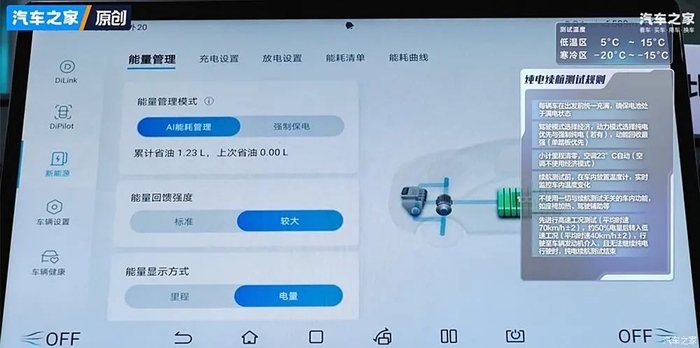 风云T9在剩余电量19%,剩余纯电续航16km时,发动机介入,第一个结束纯电续航测试,也就跑了55.7km,第一个收工。接着,海狮05 DM-i,纯电续航72.6km,五菱星光S紧跟其后,纯电续航78.2km。剩下三台就比较持久了,都跑过了100km,深蓝S05在剩余电量25%提示电量低,无法进入强制纯电,但坚持到剩余电量18%结束,纯电续航成绩109km;然后宋L DM-i在剩余电量24%,开启强制纯电,剩余里程从9km增加到20km,同时提示当前模式限速行驶,最终在15%电量和剩余续航0时,结束测试,续航成绩117.3。好了,最后一台宋PLUS DM-i同样是剩余电量24%开启强制纯电,结束电量和续航一样,但它交出了最好的成绩,纯电续航124.3km。