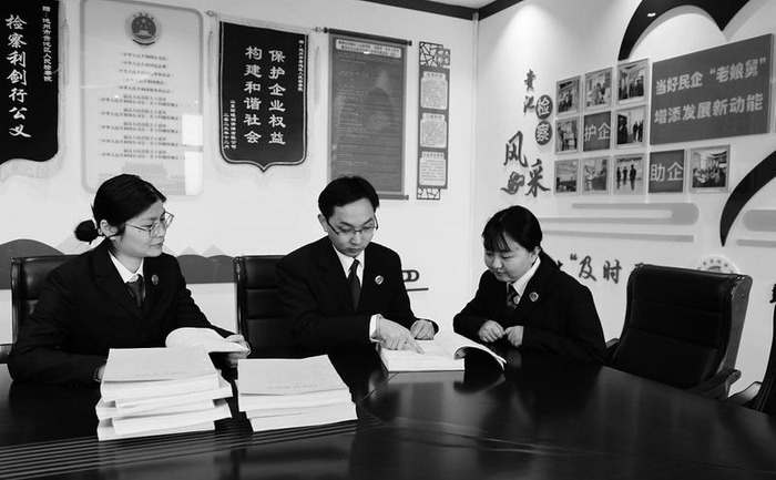 2024年2月28日,案件承办检察官就两名涉案人员拟作相对不起诉处理召开案件分析会。袁方/摄