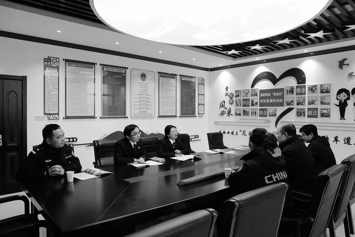 2024年1月31日,山东某润滑油有限公司负责人来到池州市贵池区检察院表示感谢。图为与办案人员座谈。袁方/摄