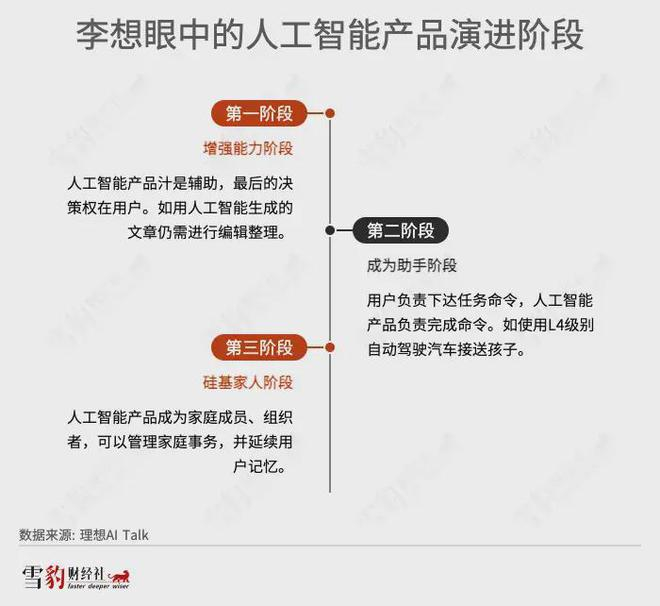 在他眼中,实现L4级别自动驾驶的意义重大。这是李想迈入万亿市值俱乐部的先决条件,意味着一家车企进入了“iPhone 4阶段”,还是进入人工智能产品的第二个演进阶段的体现。完成了第二阶段的所有目标,才能制造出硅基家人。