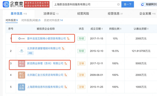 此外,蔚洁信科还曾全资成立过新流商业保理(苏州)有限公司,法定代表人为崔丽嘉,2020年7月已经注销。