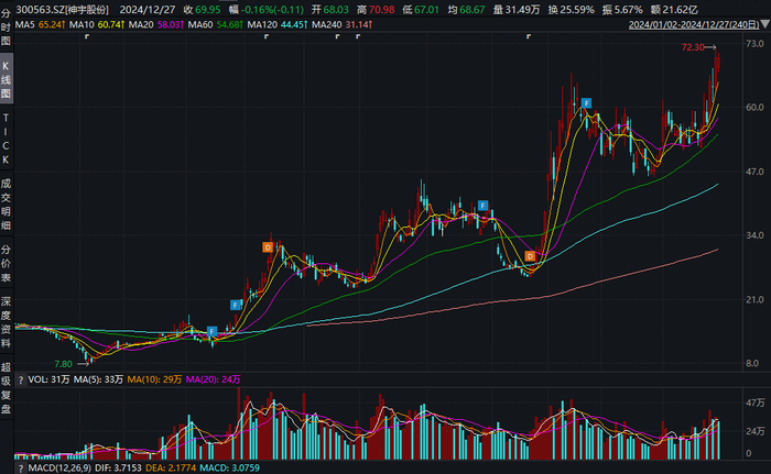 Wind数据显示,神宇股份2024年以来股价累积上涨342.16%,排名第三。公司股价自低价最大涨幅超过800%。