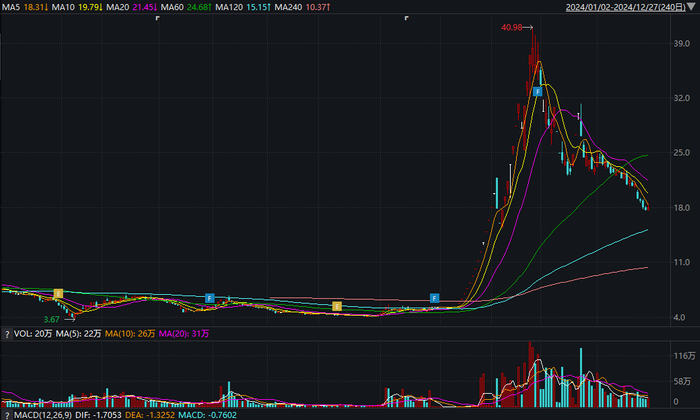 *ST景峰跌停的时间也不少,全年有57个跌停。也就是说,在2024年截至12月20日的240个交易日中,公司股价有近六成交易日不是涨停就是跌停。期间还有过停牌。