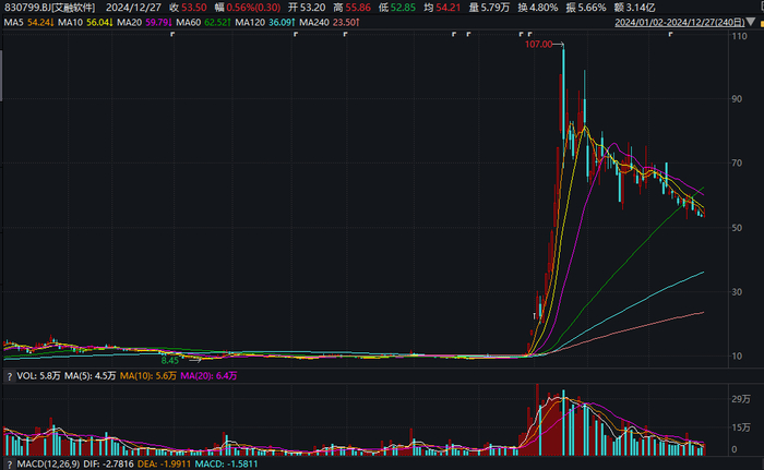 其中,艾融软件是北交所今年股价走势最耀眼的公司,也是剔除新股和次新股后,区间振幅最高的公司。